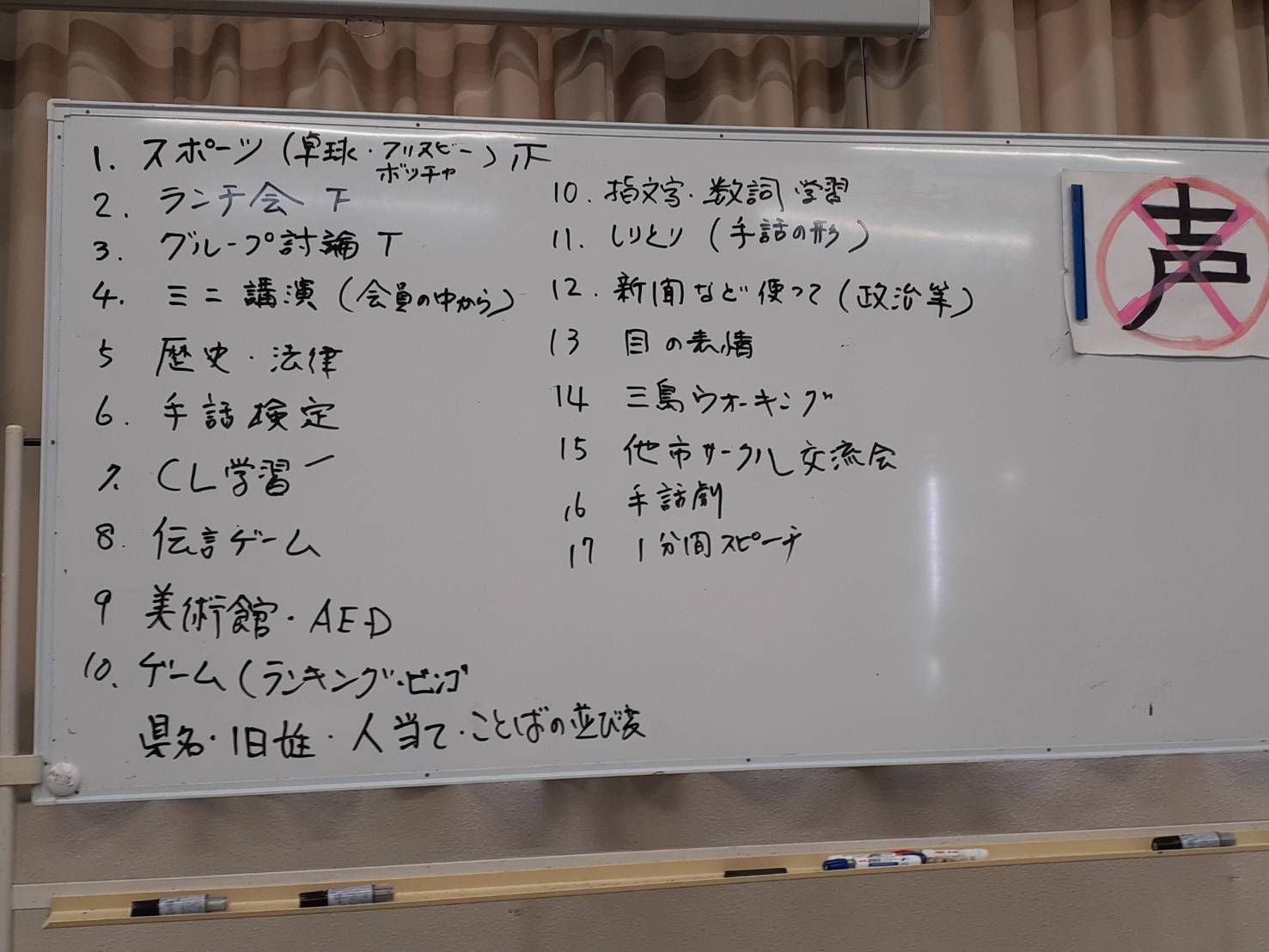 「人気のランチ会、スポーツ大会、ミニ講演、「しりとり」は日本語でやるのではなく、手話の形で続けましょう!」良い意見がたくさん出ました。来年度も楽しくみんなで学びあいます。