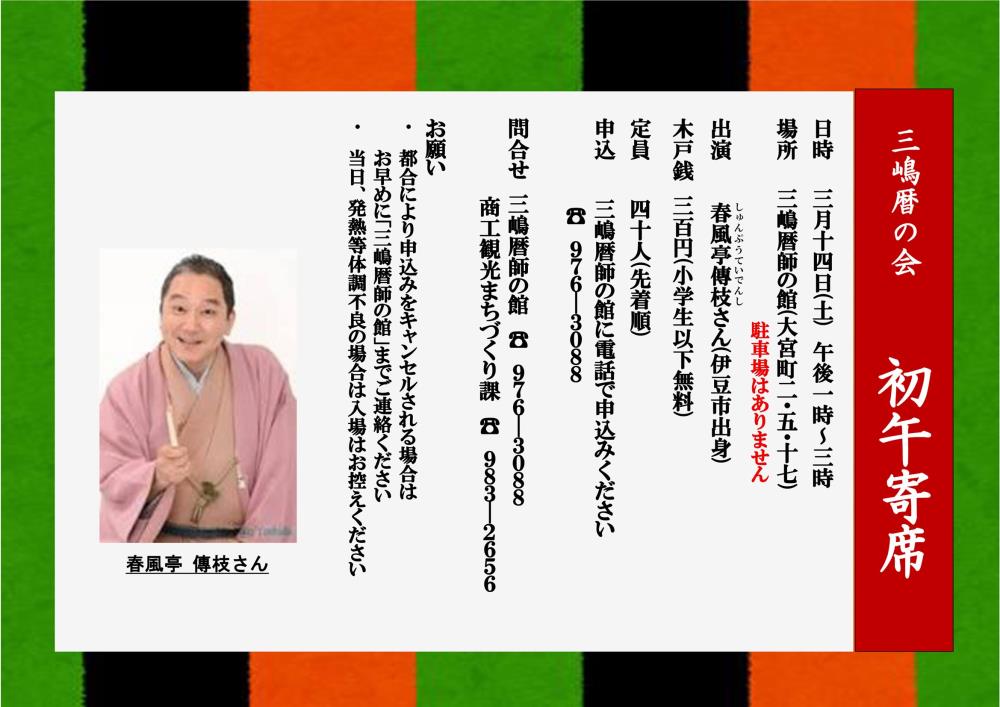 三嶋暦の会の絵日記 > 2026年2月の記事 > 三嶋暦の会 初午寄席(ご案内)