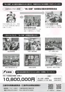 “赤い羽根”共同募金は、“住民同士のたすけあい”の考えを広め、地域の福祉活動の充実を目的とし、地域の皆さまや各種福祉団体などたくさんの方のご協力の下、10月1日より全国一斉にスタートします。集められた募金は子どもから高齢の方、障害のある方など誰もが安心して暮らせる福祉のまちづくりに活かすため、民間福祉施設の整備や、地域のボランティア活動や福祉活動を広げていくため、また災害時には生活の復旧を果たすために活用されます。“赤い羽根”共同募金は、地域のさまざまな民間福祉活動をみんなで支えるしくみ(じぶんの町を良くするしくみ)です。