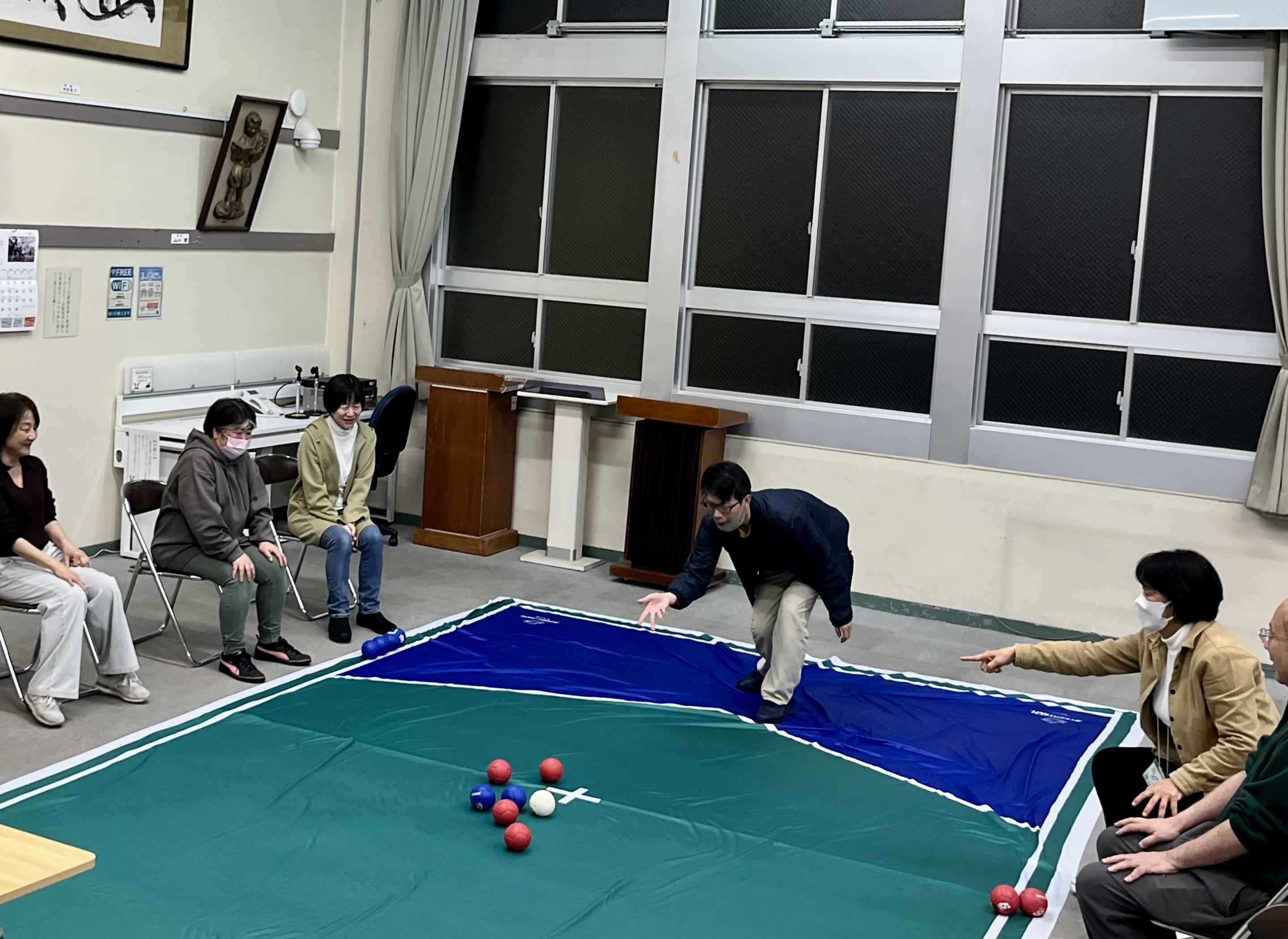 4月2日、本年度初めての夜の部の活動は、まず簡単な自己紹介をしたあと、ボッチャを行いました。2コートに分かれて、声援あり、笑いありの楽しい時間でした。