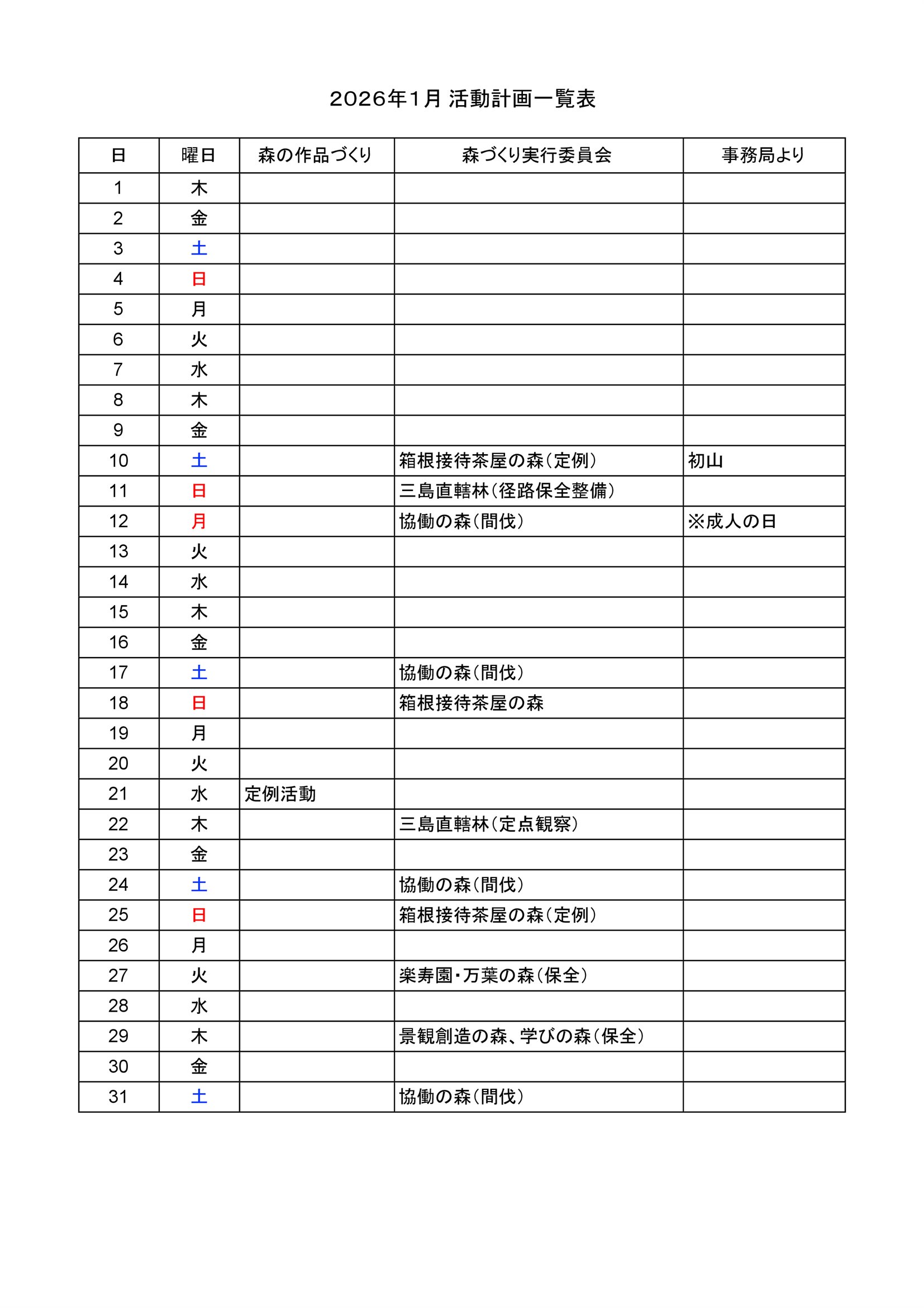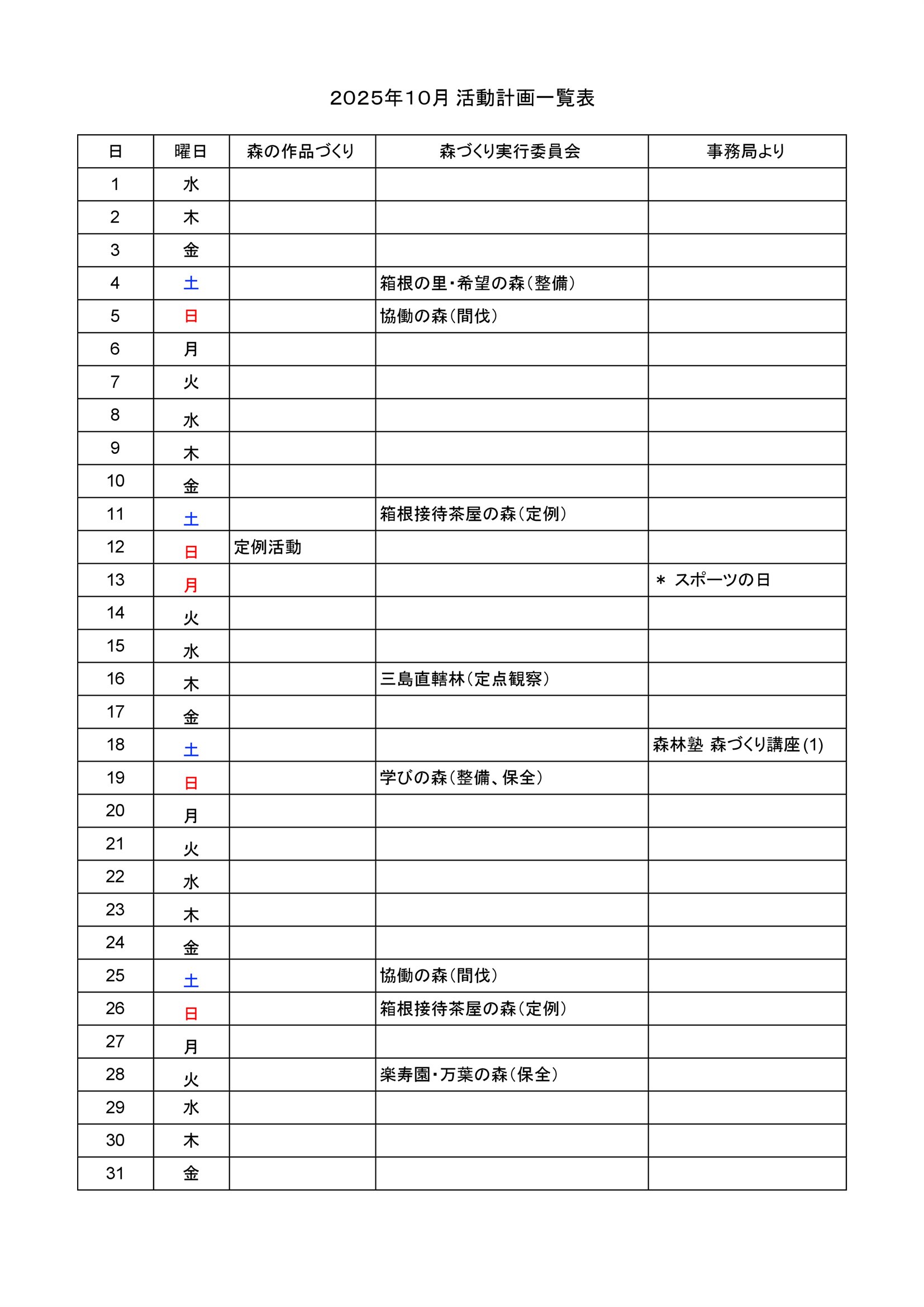 活動概要 (森の作品づくり、箱根西麓森林塾)