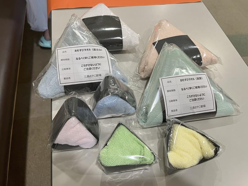 終演後、役者さんへのプレゼント「おにぎりタオル」 |