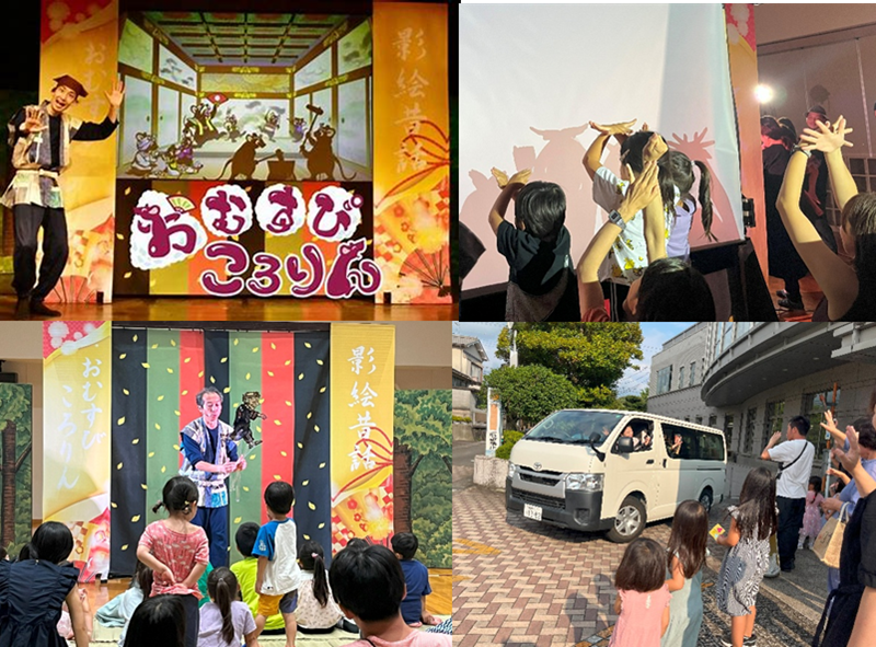 『おむすびころりん』のお話だけでなく、影絵クイズや手影絵など、子どもも大人も一緒に楽しみました。