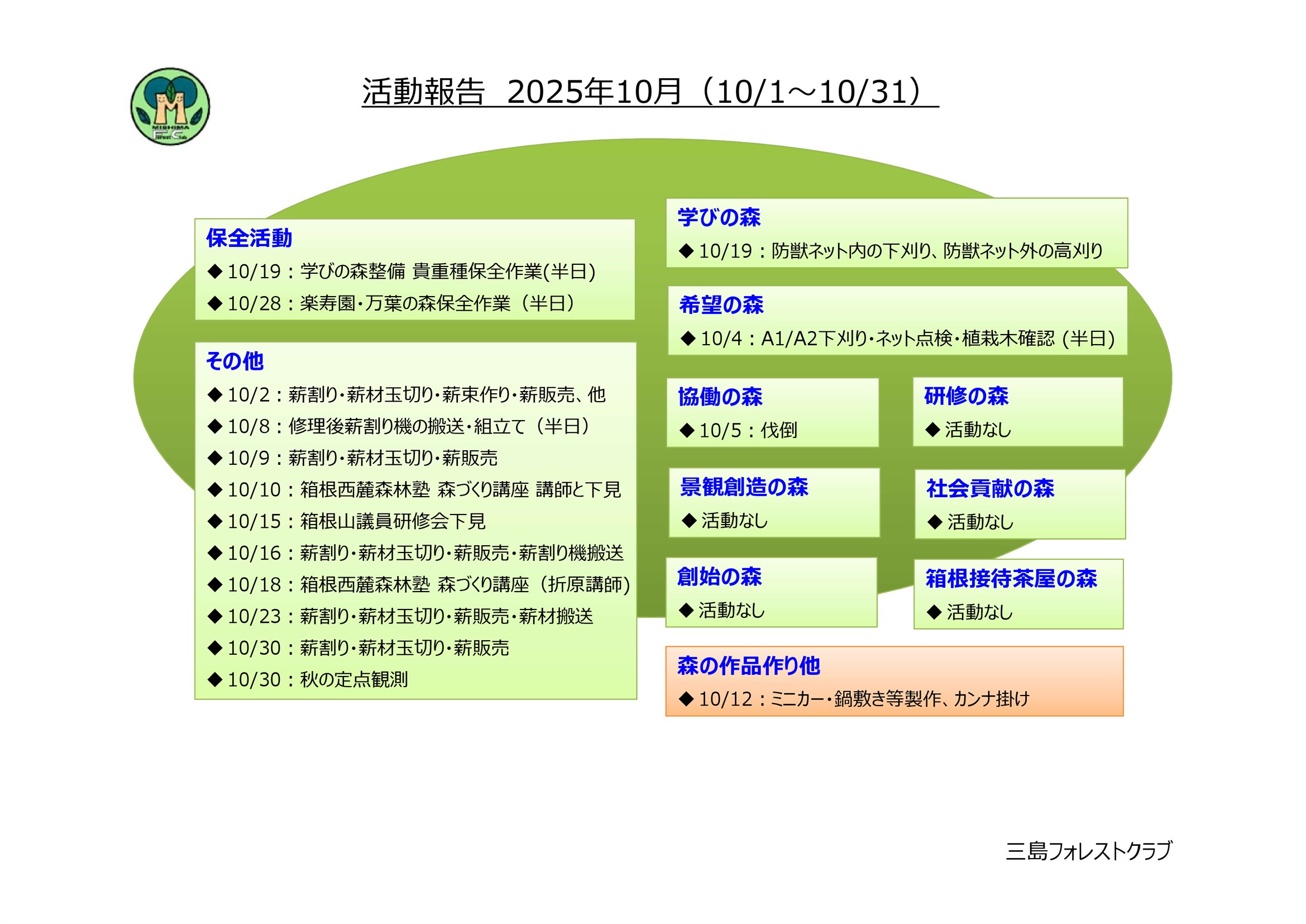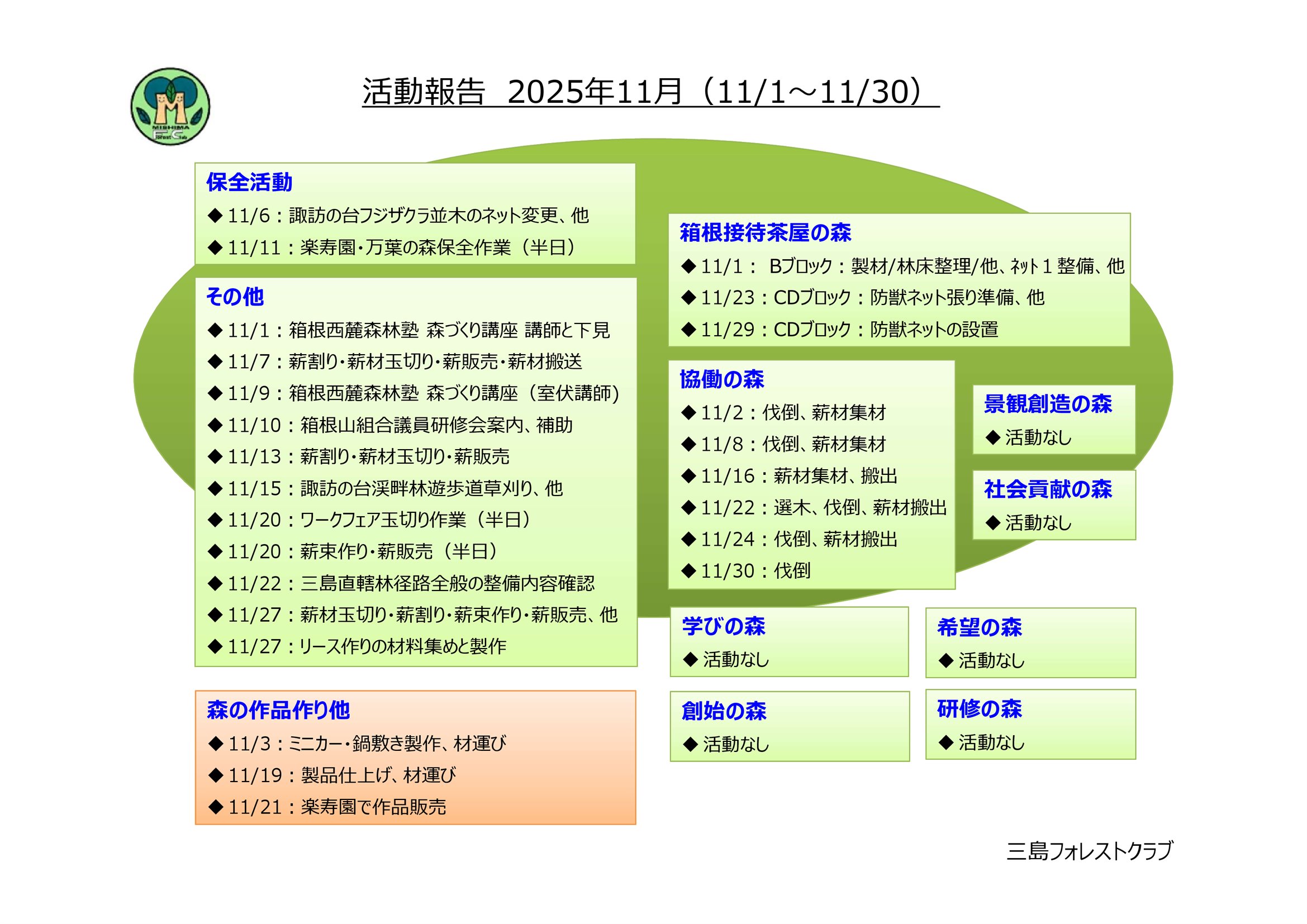活動概要 (森の作品づくり、箱根西麓森林塾)