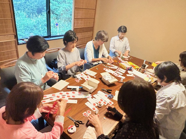 スギヤマカナヨさんと参加者の皆さんといっしょに楽しい「ほんともツアー」になるように、手作りのものも用意しています。おしゃべりしながら手を動かすのも楽しい時間です。