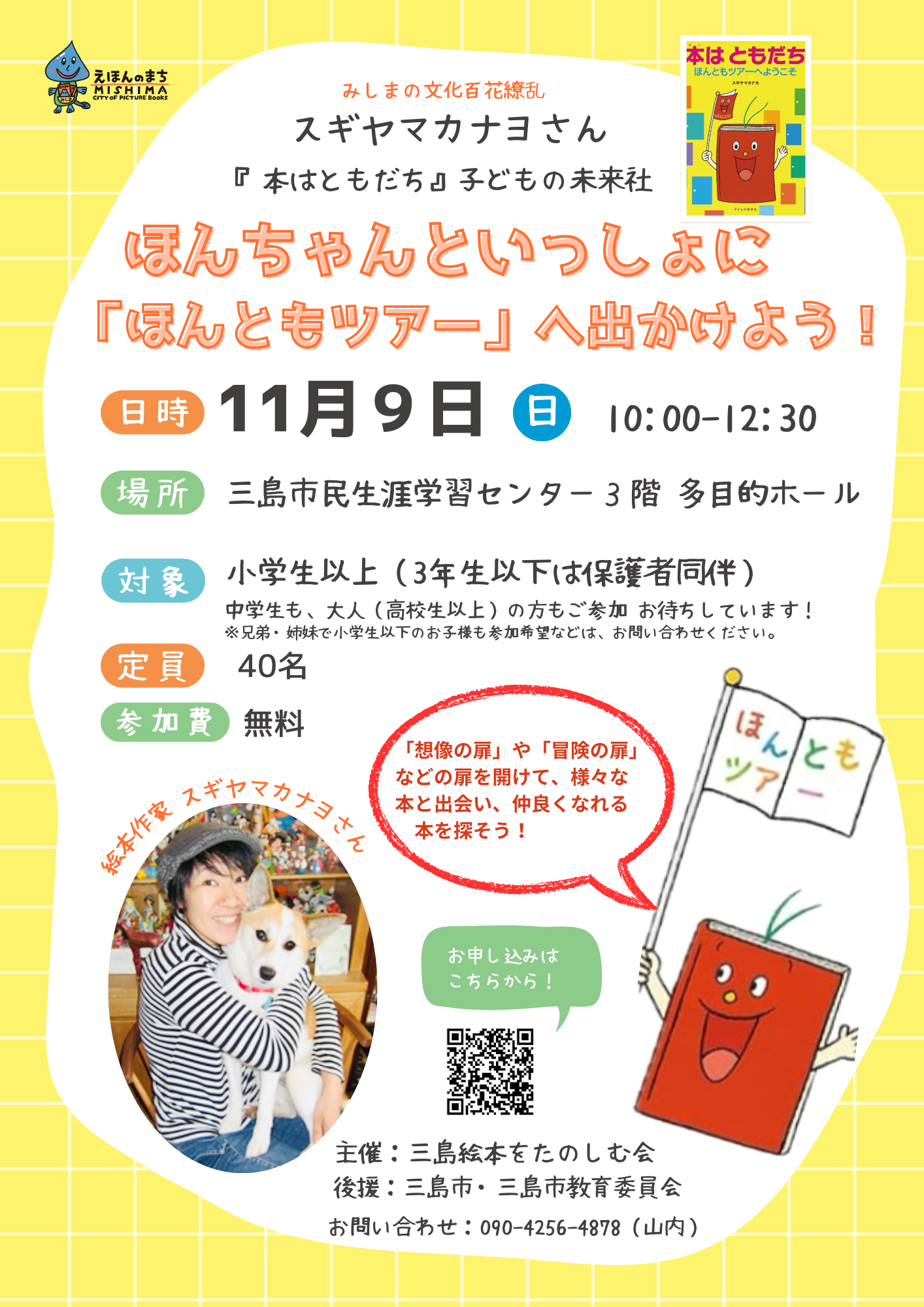11月9日、三島出身の絵本作家、スギヤマカナヨさんをお迎えして三島絵本をたのしむ会主催のイベント開催です!