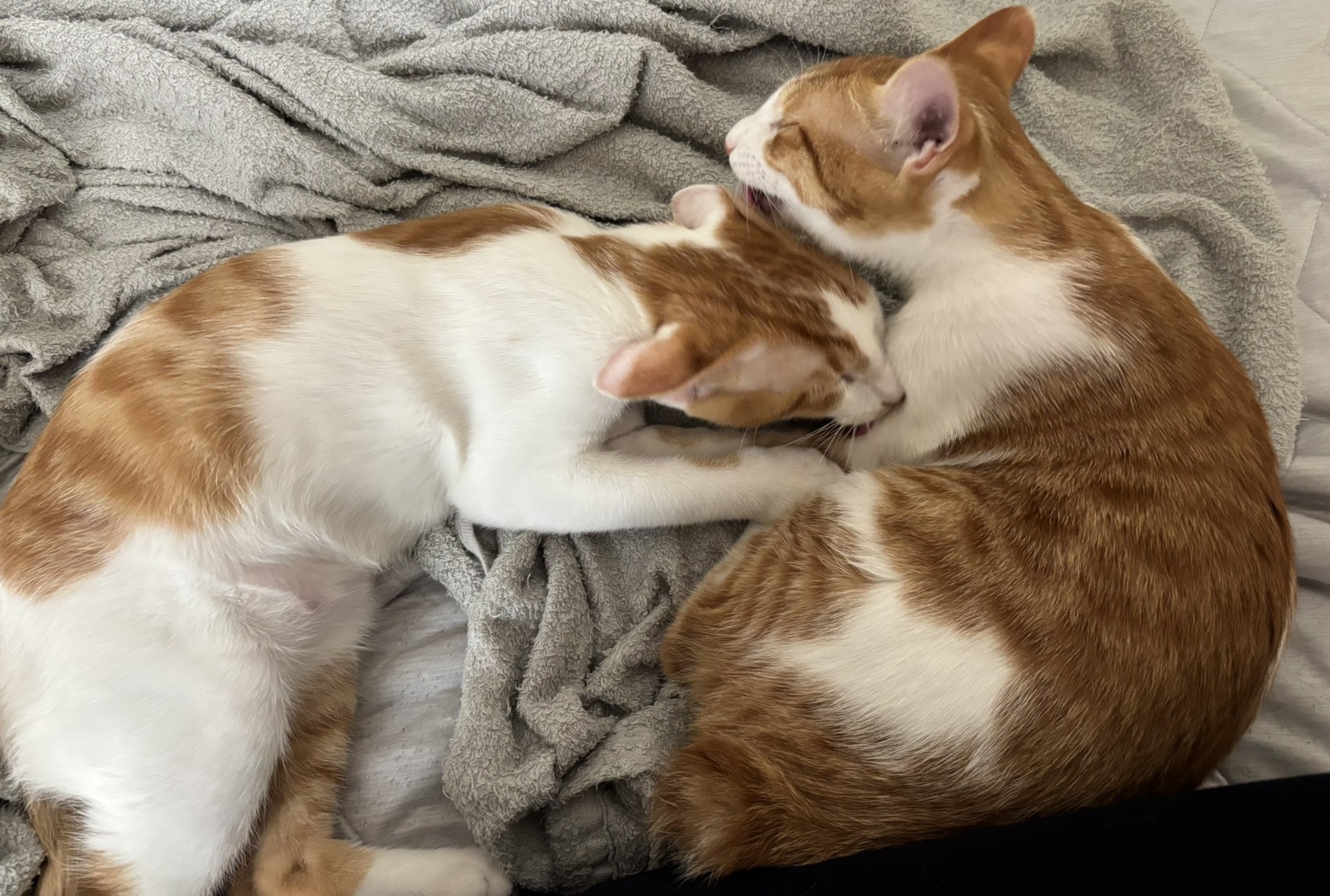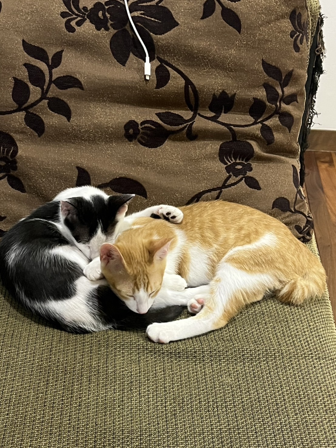 猫は忘れるのも早く兄弟なのに一触即発状態。でも仲良くなるのも直ぐでした。