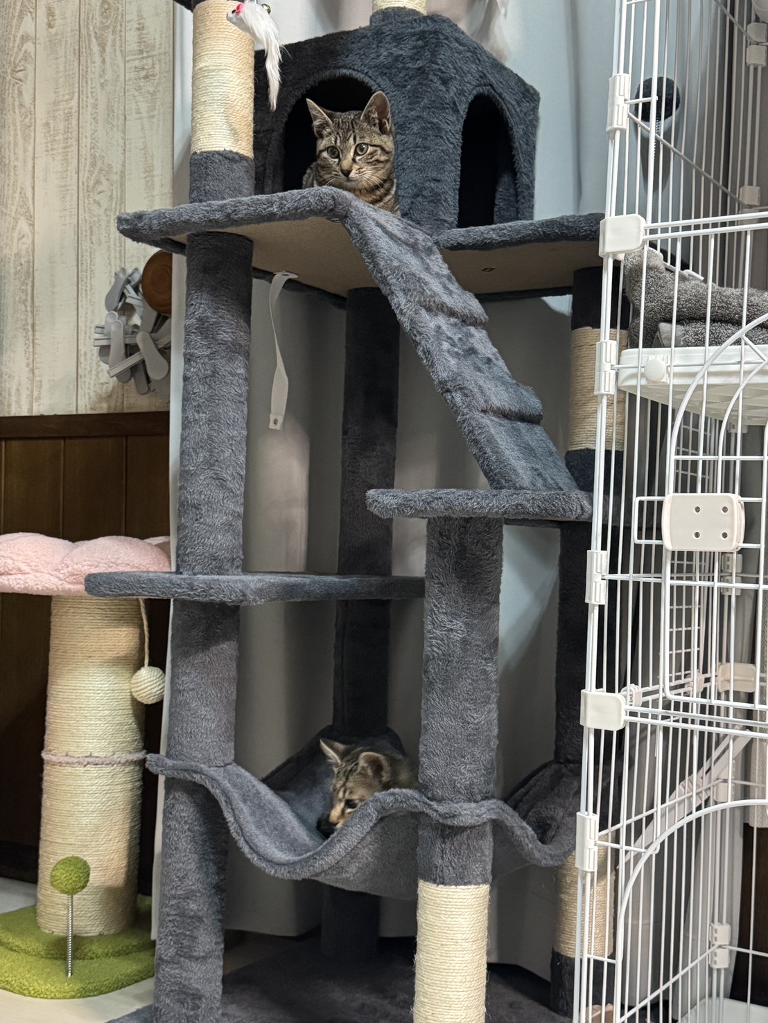 まだまだシャーはしてきますが、少しづつお家に慣れてきて、猫じゃらしで遊ぶようになりました。