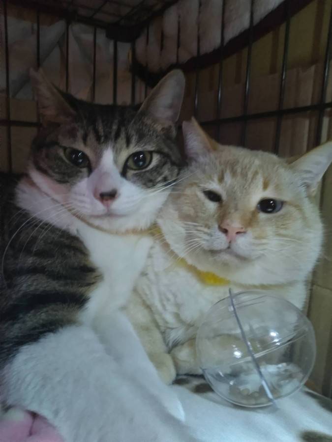 沼津にいた推定2歳の白君と10カ月の福君。(マロ君と福君に改名)