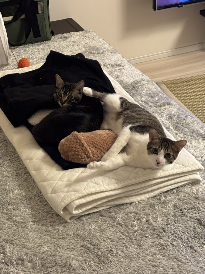 私達にも少しずつ甘えてきてくれるようになって抱っこも出来るようになりました🐱🐱
