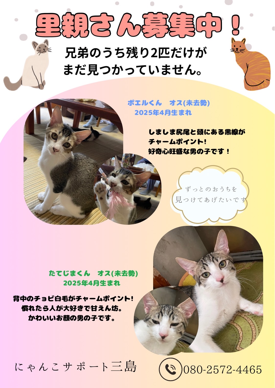 電話は、里親募集・探している猫の専用ダイヤルになります。