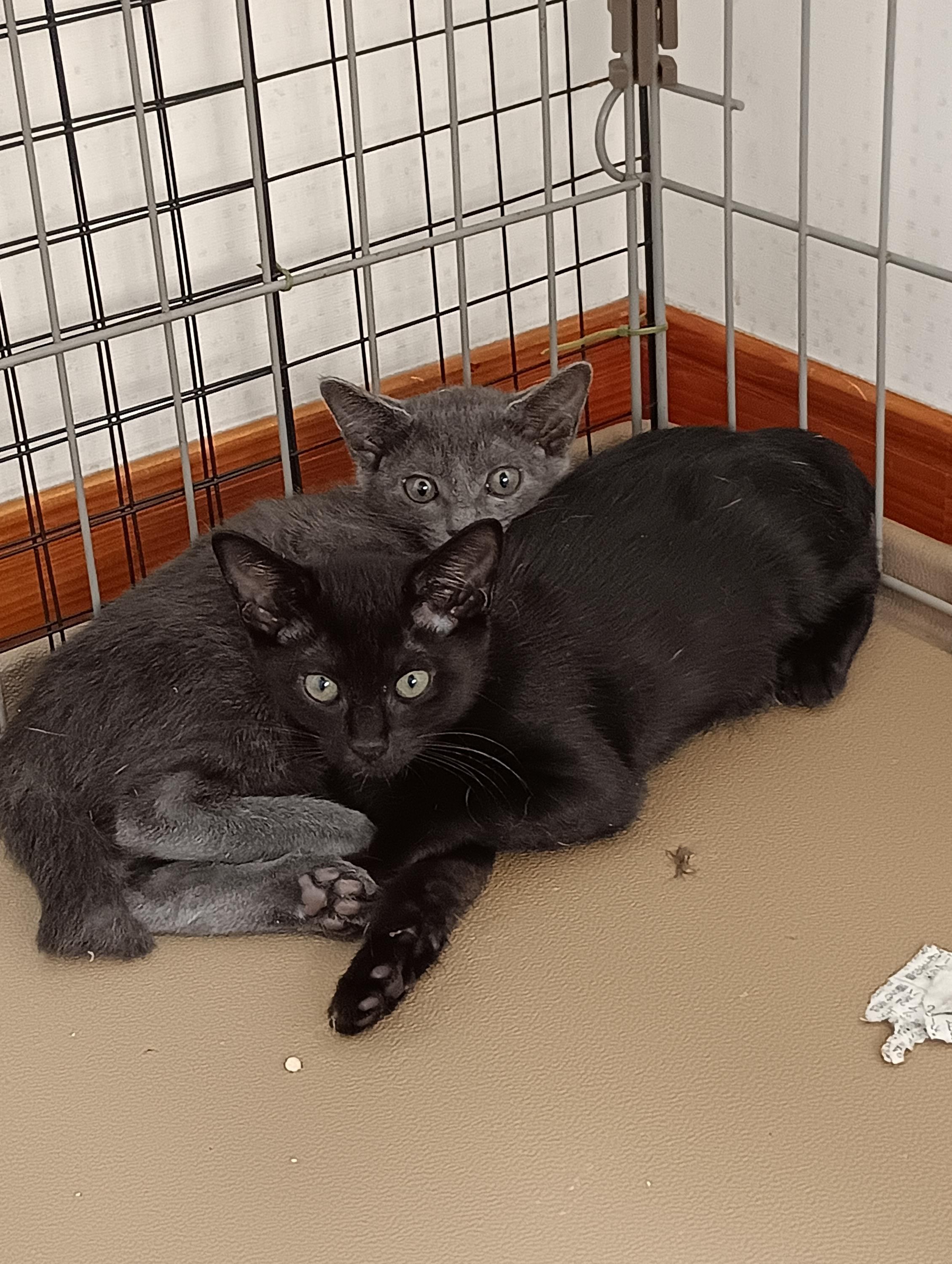 胸に白い毛がある黒猫、顔がとても可愛い少し怖がりなグレーさん。