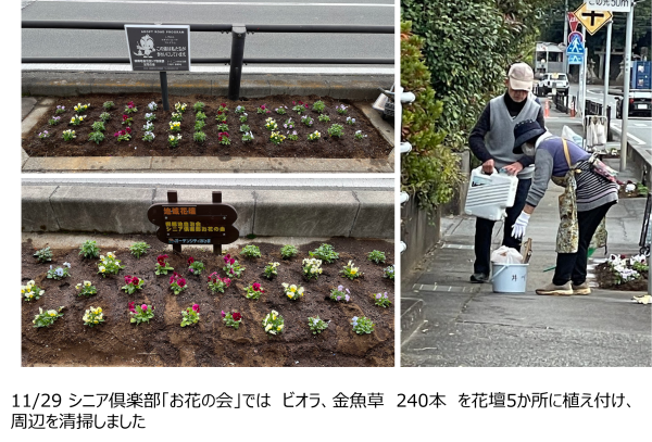 2025年11月 ビオラ、金魚草 240本 を花壇5か所に植え付け、